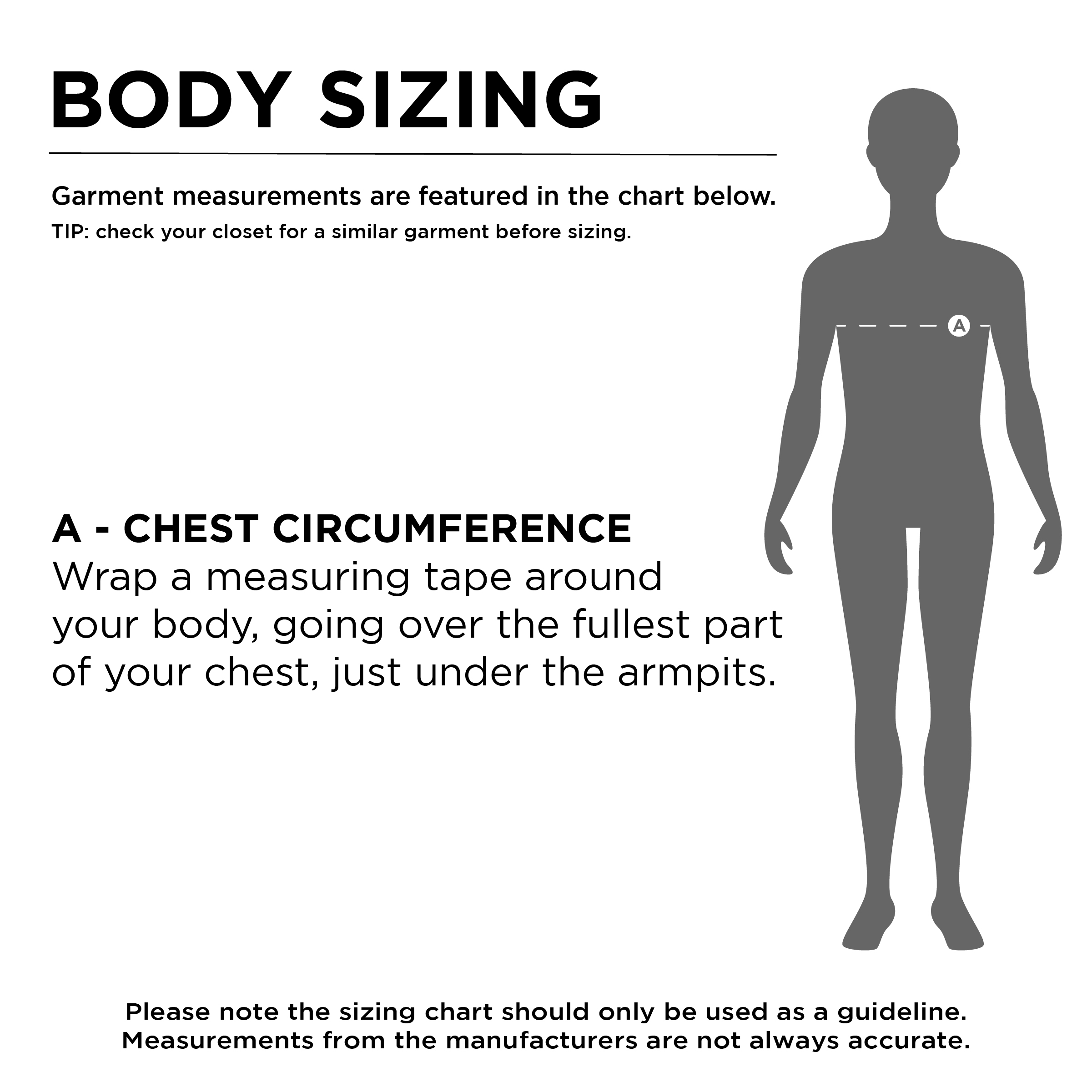 | Chest | 30"-32" | 33"-35" | 36"-38" | 39"-41" | 42"-44" | 45"-47 |
